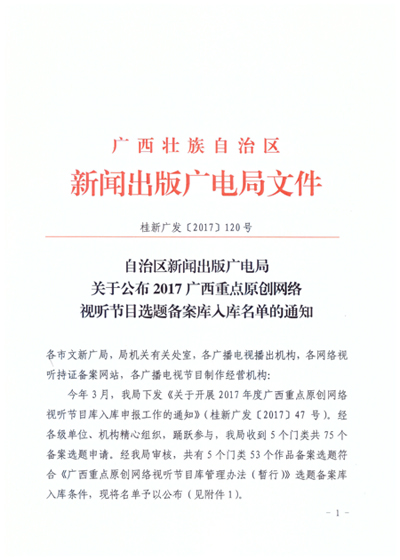 热烈祝贺天象动漫3个原创项目荣获“2017广西重点原创网络视听节目”